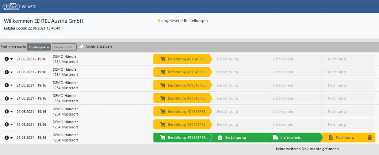 The new Web EDI portal connects directly to the SPAR supplier portal and allows for fully automated order processes. When SPAR places an order, the information leaves the company as an EDIFACT data set (ORDERS) via the data hub eXite® and reaches the supplier‘s Web EDI portal as a user-friendly order. Once the supplier has confirmed the order, an order confirmation message is sent back to SPAR and will then be directly integrated into SPAR‘s ERP system as a structured data set (ORDRSP).