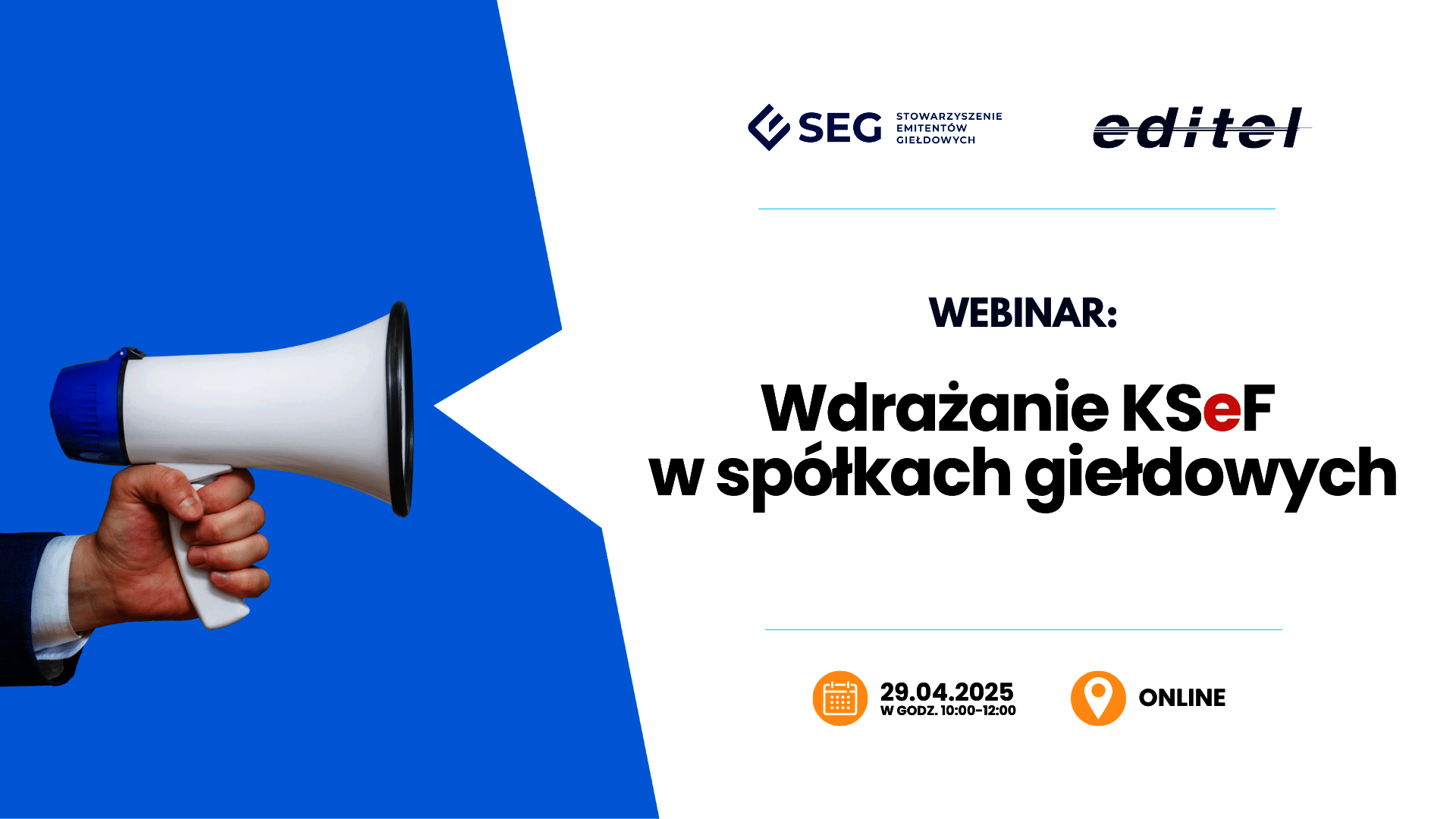 EDITEL S.A., MDDP oraz Stowarzyszenie Emitentów Giełdowych mają przyjemność zaprosić na webinarium „Wdrażanie KSeF w spółkach giełdowych”, które odbędzie się 29 kwietnia 2025 roku w godzinach 10:00 - 12:00.