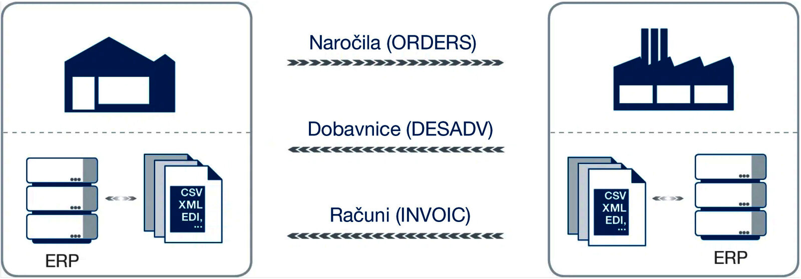 Logistika EDI integracijaOd naročila do dostave in vse do plačila brez enega samega kosa papirja. To omogoča elektronska izmenjava podatkov.